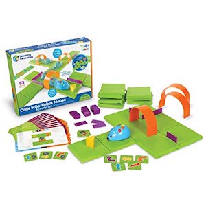 Kids develop critical-thinking and problem-solving skills as they create a structured path for Colby, the programmable robot mouse, to reach the cheese. Kids build mazes using guidance from 10 activity cards and then use coding cards as a guide to “program” Colby to navigate through the maze. Kids will have fun without a tablet or apps and will learn basic coding logic as they input step-by-step instructions for Colby to get the cheese. Colby lights up, makes sound, and has color buttons that match the coding cards - making it easy for kids to program, sequence, and learn.